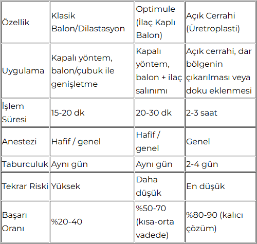 - Üretroplasti (açık cerrahi) kadar kesin ve kalıcı sonuç vermez.